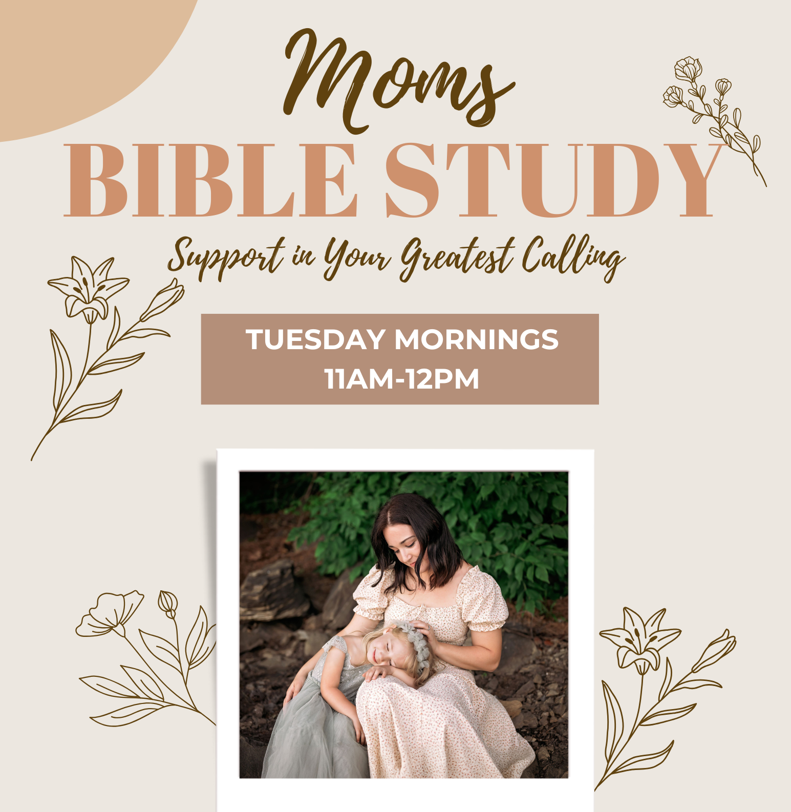 Join together with other moms for a time of connecting and Bible study on parenting, held Tuesday mornings from 11:00 a.m. to 12:00 p.m. in Conference Room 1 at Living Hope. Free childcare provided.